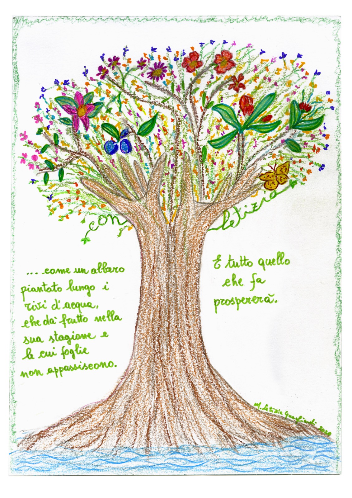 Auguro anche a te, se sei arrivato fin qui nella lettura di questo post, di essere come un albero piantato lungo un corso d’acqua. E, se vuoi, scegli un altro salmo o un versetto della Bibbia e fallo diventare lo slogan (da mettere in pratica!) della tua vita.