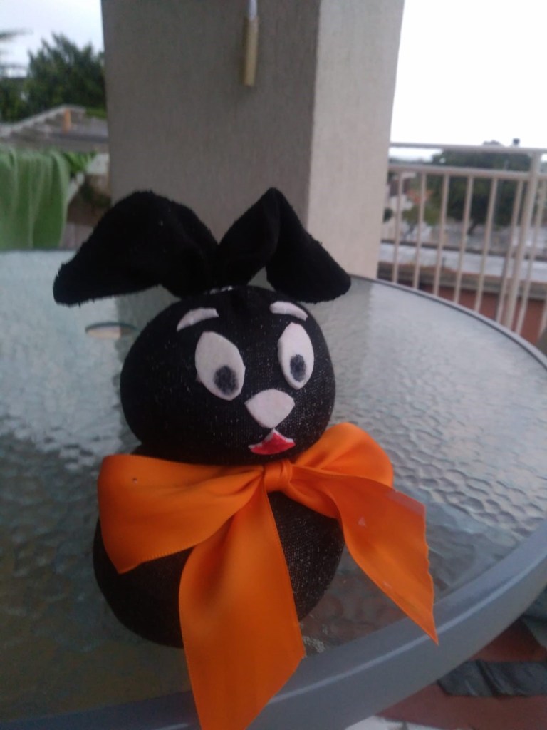 Questo simpatico coniglietto fermaporta Isabella l’ha realizzato con un calzino riempito di sale.