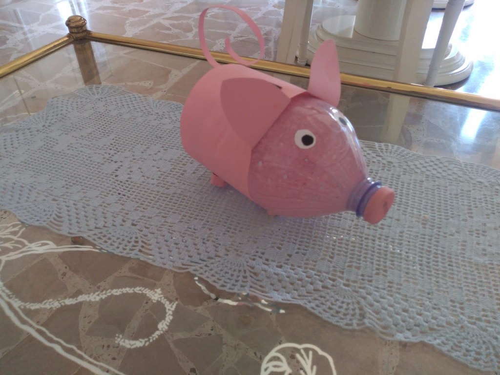 Il porcellino salvadanaio è stato realizzato con una bottiglia di plastica
