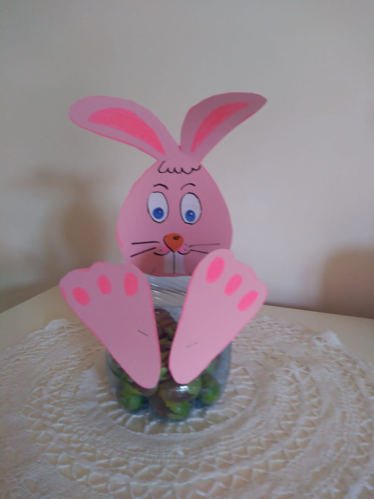 Coniglietto portaoggetti creato con bottiglie di plastica