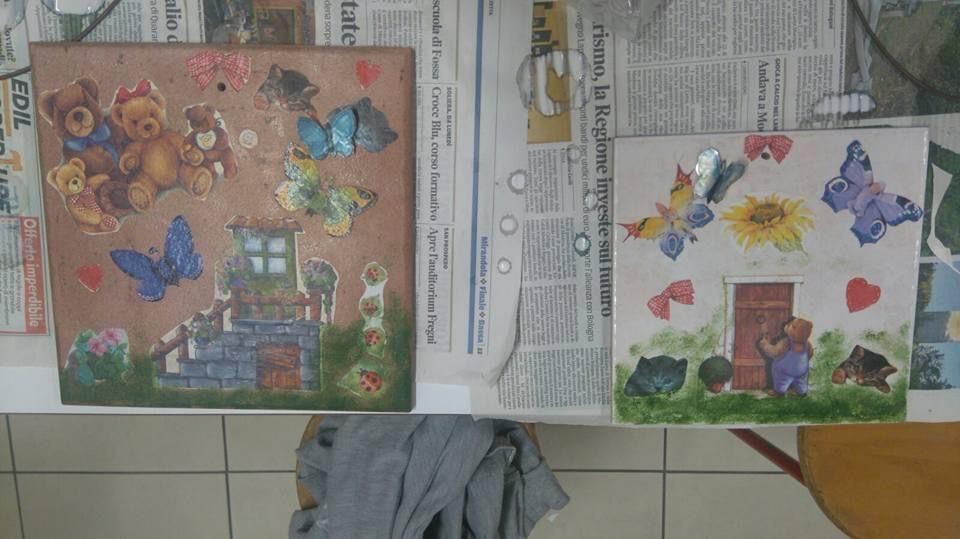 Le piastrelle rimaste dopo un lavoro di ristrutturazione (la scuola è nella zona delle ceramiche Sassuolo) sono state dipinte dai bambini.