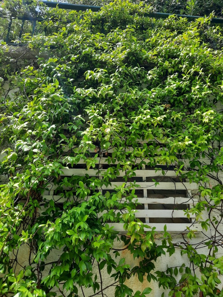 Il pallet, fissato al muro, aiuta la pianta ad arrampicarsi.