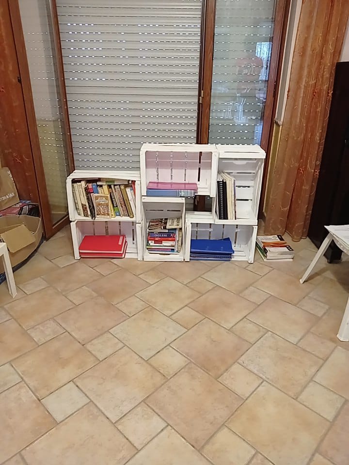 La febbre del riciclo creativo continua a contagiare. Le immagini delle cassette della frutta, destinate ad essere buttate perché hanno compiuto la loro missione, me le ha inviate un ragazzo, Antonio Scaglione. Ora svolgono un altro compito: prima contenevano frutta, ora contengono libri.