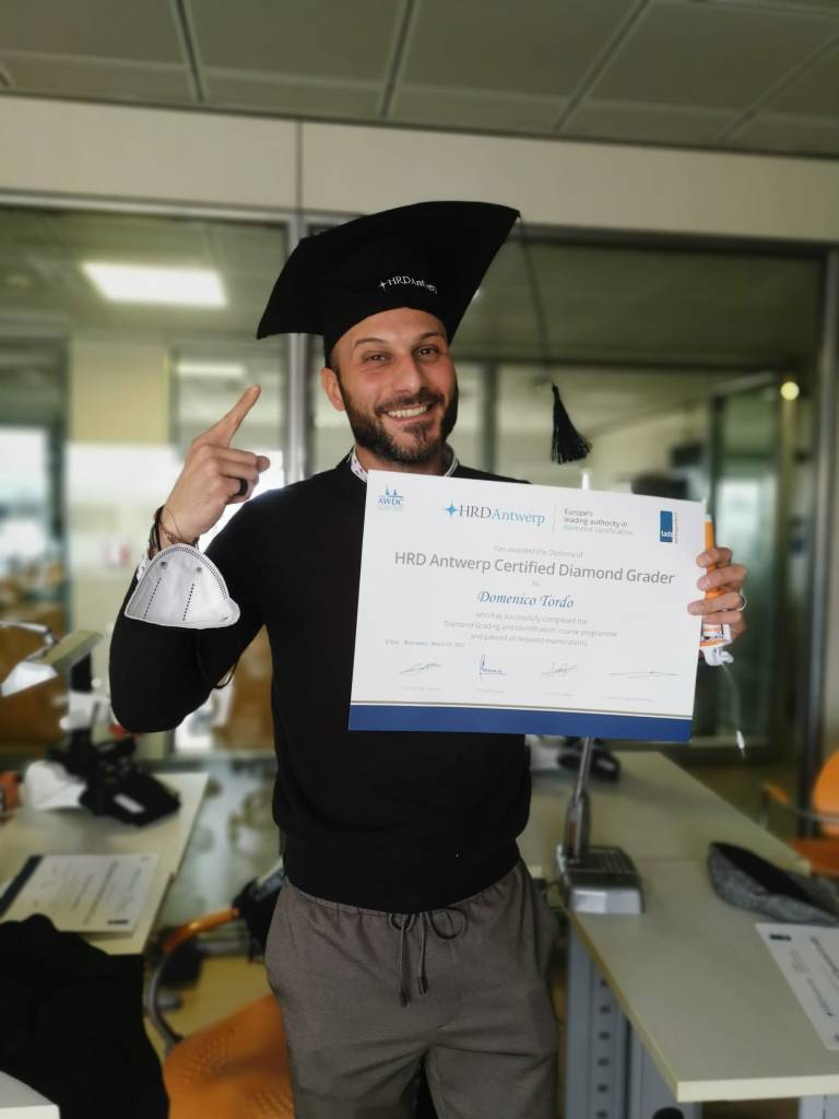 Ulteriore formazione per il giovane artista: ha conseguito il diploma di Certificatore del diamante.