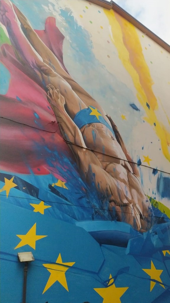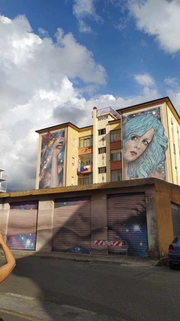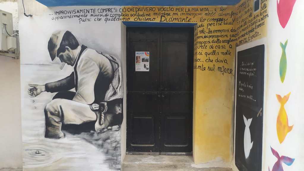 Ma Diamante è famosa anche per i suoi tanti murales (ce ne sono più di 300 sparsi in tutta la città). Per questo è chiamata anche la città dei nasi all’insù: si deve guardare verso l’alto per ammirare le opere dipinte sui muri. Camminando fra i vicoli, si scorge il mare (è a pochi passi e nel 2021 ha ricevuto l’ambitissima Bandiera Blu) che con le sue tante sfumature di verde e di blu accompagna i colori di questa galleria d’arte all’aperto. Chissà cosa direbbero Matilde Serao e Gabriele D’Annunzio – fra i tanti personaggi che si innamorarono di questo suggestivo borgo di pescatori – se li vedessero oggi. Non sono riuscita a vederli tutti (alcuni sono nascosti nei vicoletti) e neanche a leggere tutte le firme e i versi che hanno lasciato sui graffiti i tanti poeti, scrittori, giornalisti, rivoluzionari e storici che sono passati di qui.