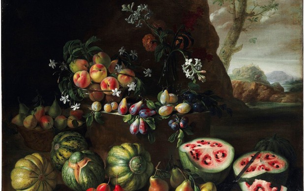 Ma l’anguria ha avuto sempre i colori con cui ci appare oggi? Forse no: in questa tela dipinta tra il 1645 e il 1672 dal naturamortista Giovanni Stanchi, detto dei Fiori, molto apprezzato nella Roma barocca, ha un colore pallido e si vedono strane sezioni cave in cui la polpa rossa forma delle spirali. Secondo la teoria di alcuni studiosi si tratta di una varietà selvatica, precedente ai processi di coltivazione e selezione genetica che l’uomo ha messo in atto nel corso dei secoli.