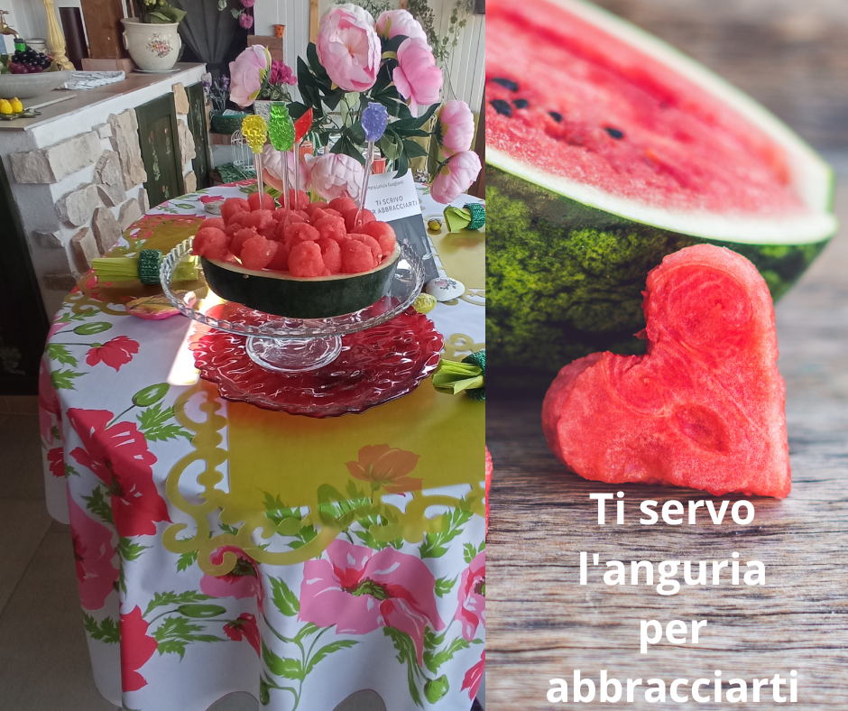 Anche servire a tavola l’anguria vuol dire abbracciare gli ospiti e allenare la nostra creatività: la regina dell’estate si può tagliare a fette, a cubetti, a palline, a spicchi, a zigzag. Può essere usata come contenitore (come ho fatto io) e può essere anche intagliata per creare meravigliose sculture.