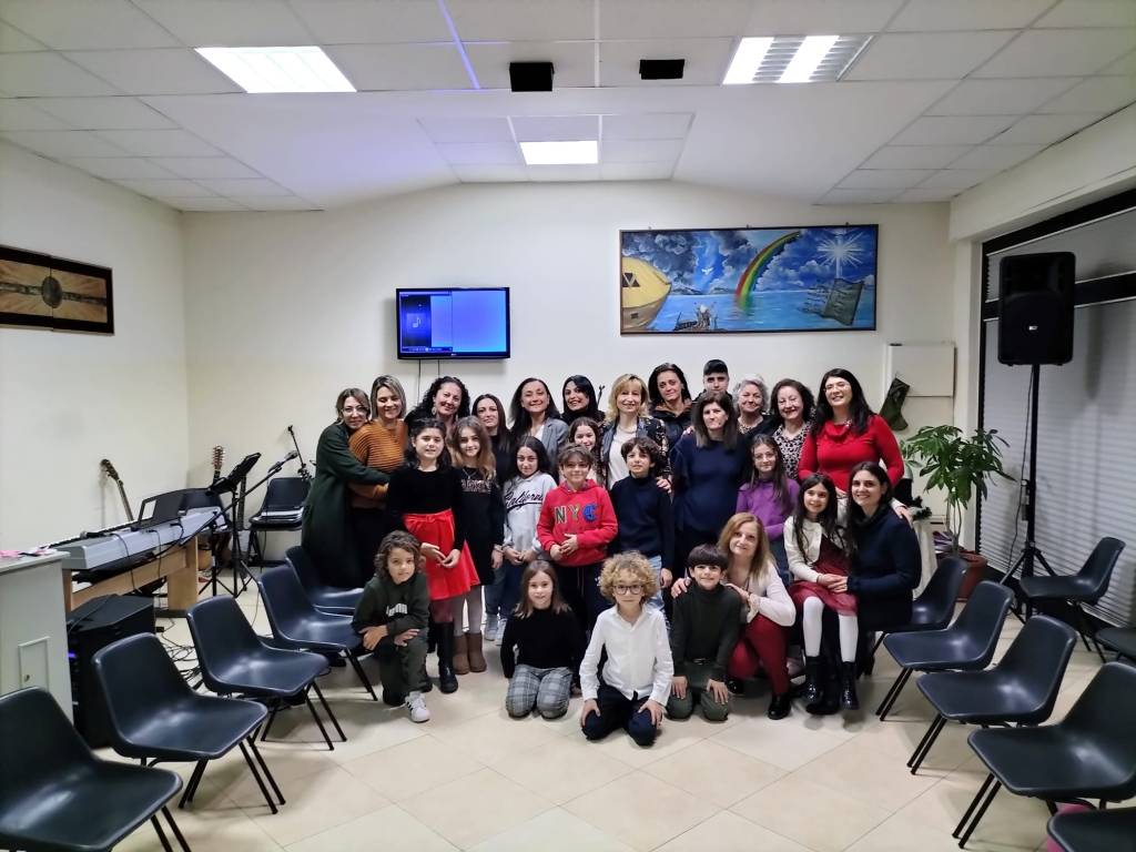 Eravamo in tanti: i piccoli alunni della 3 C della Scuola Primaria “Monachelle” di Rossano con la loro maestra Maria Antonietta Ruperto, le loro mamme e nonne, altri bambini, io con il mio laboratorio di scrittura creativa “Io scrivo con letizia” e alcuni dei membri della Chiesa Evangelica “Bethel” di Rossano, nei cui locali si è svolta la bellissima festa: mia sorella Daniela, Beatrice, Egle, Assunta, Pina, Flora e Luigi.