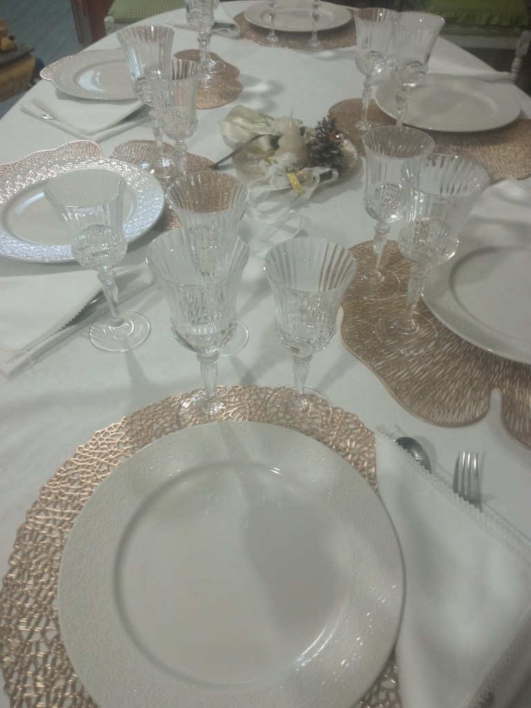 Questa è la mia tavola, in bianco e oro. Ora aspetto la foto della tua tavola di Natale!