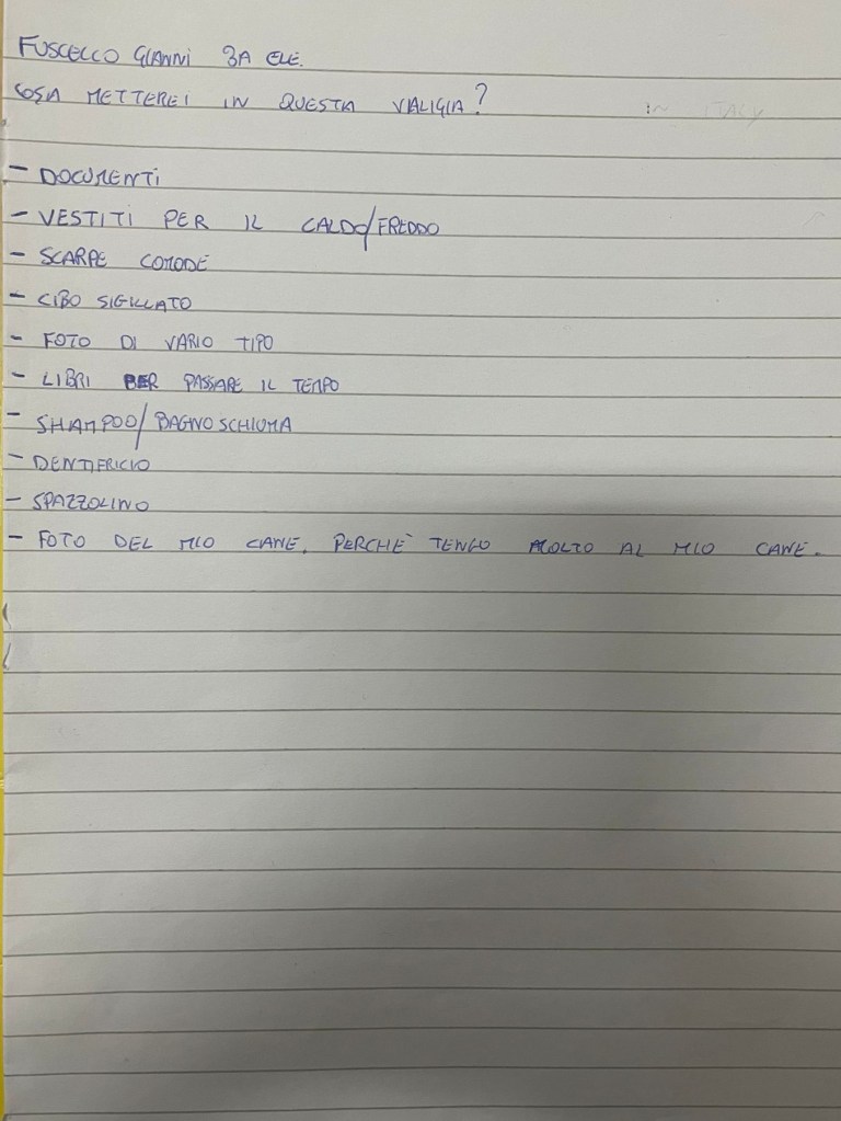 Merlino, lo scopo della domanda è: cosa metteresti nella valigia se…ecc.. Se ADESSO venissero a dirci che dobbiamo lasciare casa senza sapere ecc.. NON sapendo cosa è accaduto.