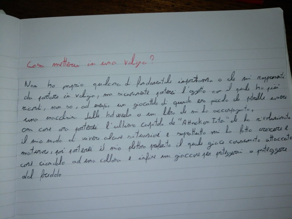 Immaginiamo: qualcuno bussa alla nostra porta e ci dice che abbiamo due ore per riempire una valigia, una come quella della foto, per esempio. Ci viene detto che verranno a prelevarci per portarci in un campo di lavoro ma non ci viene specificato per quanto tempo. Richiudiamo la porta e cominciamo a riflettere: cosa ci mettiamo in questa valigia?