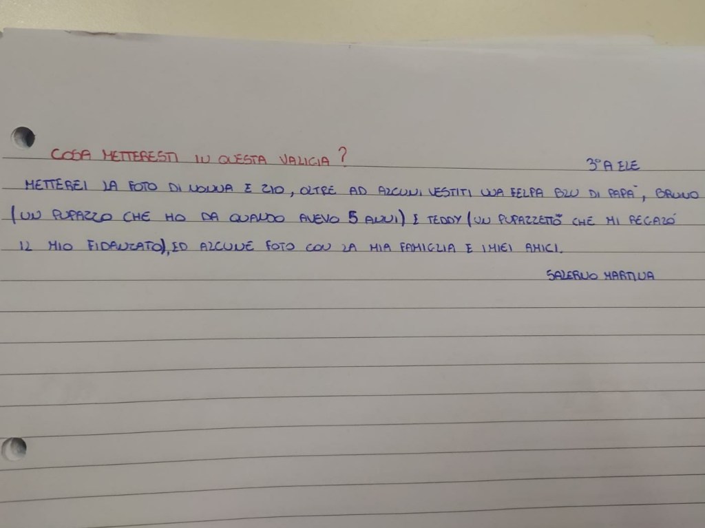 Avevo già la risposta da qualche giorno, ma non sono riuscita a scriverla per tempo. I ricordi….ecco cosa metterei in valigia….solo quelli perché con il senno del poi, conoscendo la storia, i ricordi avrebbero dato la forza di andare avanti. La shoa ogni anno ci induce a riflettere sugli orrori che possono compiere gli uomini. Orrori inimmaginabili che si chiede ogno volta di non ripetere. Eppure…ancora oggi si parla di guerra, in classe ho un bambino Ucraino e tutti i giorni ne parlo. L’ abbiamo accolto e gli vogliamo bene come se ci fosse dalla prima, ma lui lo stesso si sente smarrito. Come non si fa ad esserlo….dopo aver lasciato anche lui le sue abitudini, le sue sicurezze ed aver messo nella valigia solo i ricordi della sua Ucraina. Ecco un po’ la storia si ripete, non più in grandi proporzioni, non più con progetti di sterminio, ma con sentimenti di paura e di smarrimento nel cuore, gli stessi degli ebrei quando erano chiamati a fare le valigie in due ore, ignari del loro futuro e destino.
