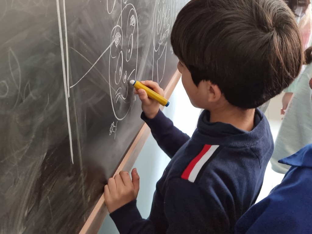Per oggi ci siamo fermati qui perché è importante saper costruire i personaggi di una storia, sono elementi attivi e tridimensionali. Ciò significa che ad ognuno di loro bisogna dare un preciso aspetto fisico, un carattere, un comportamento, degli obiettivi e anche delle passioni. I bambini, stamattina, sono stati molto bravi a caratterizzare i loro personaggi, dopo le mie “dritte”: per esempio, Buk ha il gilet e il papillon e sa consigliare ad ogni animale del bosco la giusta storia da leggere; sua moglie ha un fiocchetto sulla testa e sa quale dolcetto può accompagnare quel tipo di storia e il piccolo Tontolino ha un ricciolo in mezzo alle orecchie, è curioso ma è anche un solitario, vuole esplorare l’immensa biblioteca ma è anche pieno di paure e la Signorina Melopresti è dolce e gentile, ha gli occhiali e svolge con passione il suo lavoro.