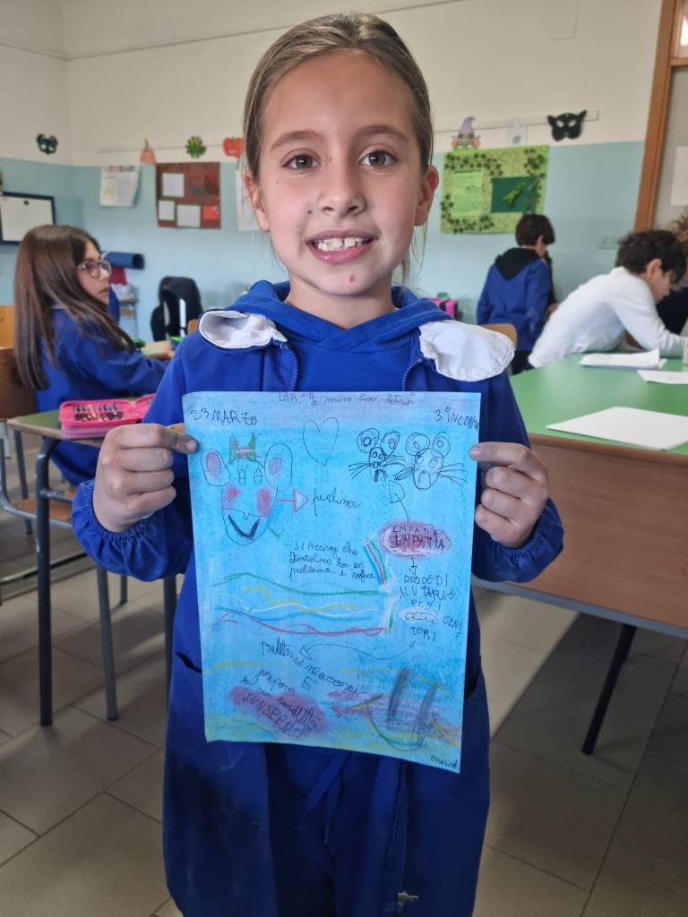 E così con i miei piccoli scrittori abbiamo parlato dell’empatia, cioè “sentire dentro”, immedesimarsi in un’altra persona e provare i suoi stessi stati d’animo, sia di gioia che di tristezza.
