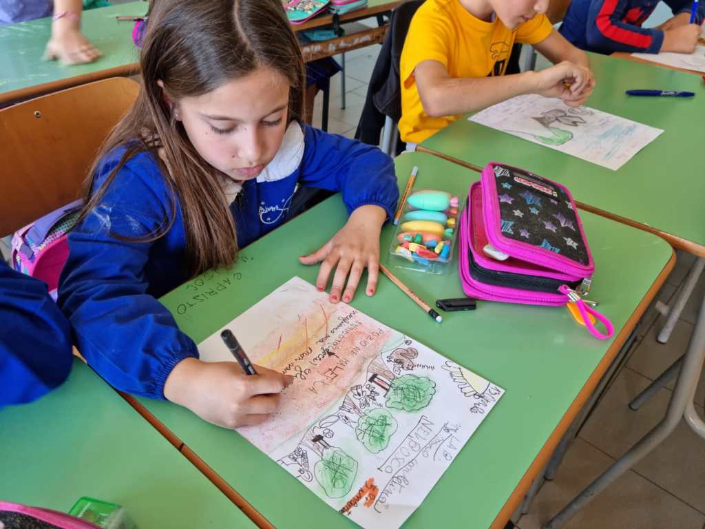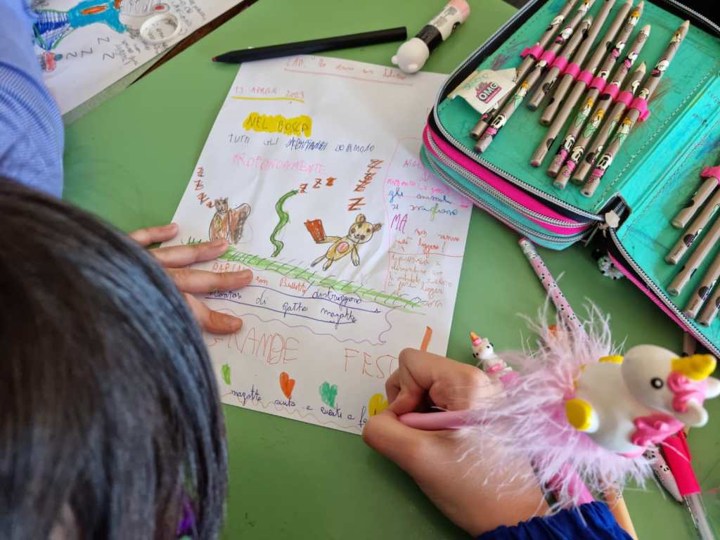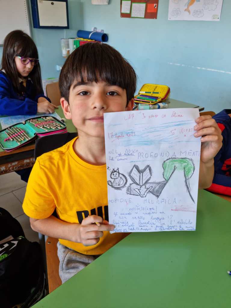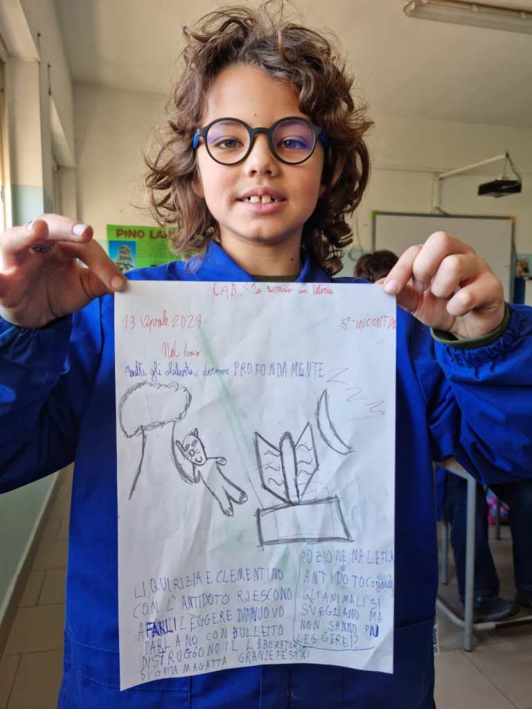 Oggi il 5° incontro con i miei piccoli scrittori. La storia che stiamo scrivendo insieme ha avuto dei risvolti inaspettati e anche la conclusione è stata sbalorditiva. Tante emozioni hanno travolto i protagonisti, gli antagonisti e tutti i personaggi secondari. Perfino quelli cattivi, cioè Gatto Bulletto e Gatta Magatta, hanno sorpreso tutti noi.