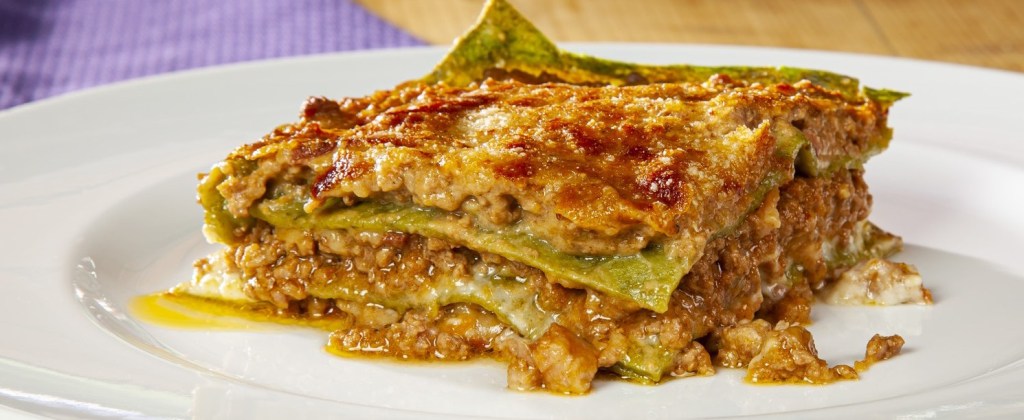 - La LASAGNA – Sfoglia verde alternata a ragù e besciamella. La lasagna a strati come la conosciamo oggi è stata inventata dal bolognese Francesco Zambrini nel 1863. In quell’anno pubblicò Il libro della cucina del sec. XIV in cui lanciava per la prima volta la lasagna stratificata.