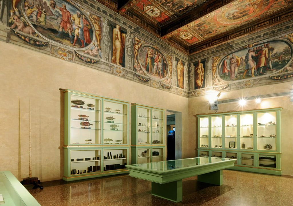 Palazzo Poggi fu acquistato nel 1711 dal Senato bolognese per insediarvi l’Istituto delle Scienze e delle Arti, voluto da Luigi Ferdinando Marsili. Dopo quasi tre secoli le grandi sale, affrescate dai celebri pittori Pellegrino Tibaldi, Nicolò dell’Abate e Prospero Fontana, ospitano nuovamente gli antichi corredi delle camere di geografia e nautica, architettura militare, fisica, storia naturale, chimica, anatomia umana e ostetricia.