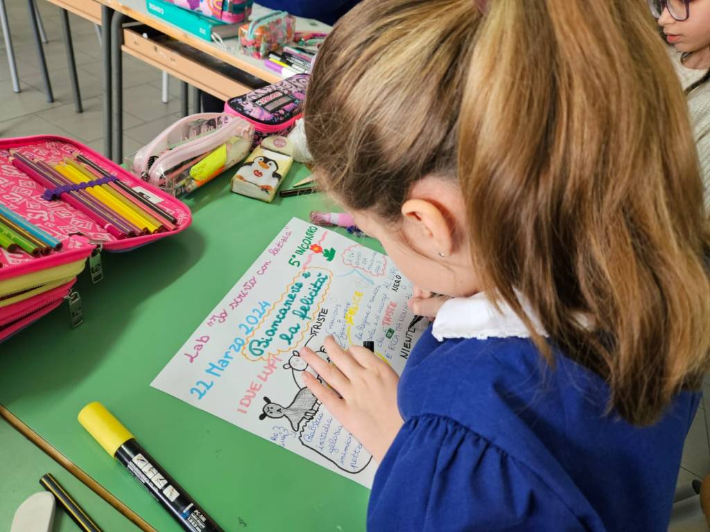 Con il quinto incontro si è concluso il Lab. di scrittura creativa “Io scrivo con letizia” che ho tenuto con la 4^ B della Scuola Primaria “Monachelle” di Rossano. La nostra fiaba rivisitata di Biancaneve ha avuto un epilogo sorprendente. Nella quarta puntata (QUI) eravamo rimasti alla grande battaglia scatenatasi tra la Regina e i suoi soldati e i Manions che proteggono Biancaneve nella loro città sotterranea. Abbiamo assistito ad uno dei tanti prodigi tecnologici dei Manions che usano le loro abilità informatiche per il bene: dai fucili, dalle pistole e dalle bombe dell’esercito della Regina scaturiscono dolci e ogni ben di Dio. I soldati si rendono conto che fino ad allora hanno vissuto un’esistenza fatta solo di cieca obbedienza, di tristezza e di piattezza, succubi dell’invidia e della cattiveria della loro perfida regina e quindi si ribellano, mangiano dolci insieme agli abitanti della città, ballano e si abbracciano come fanno tutti.