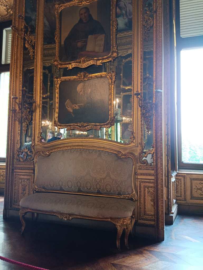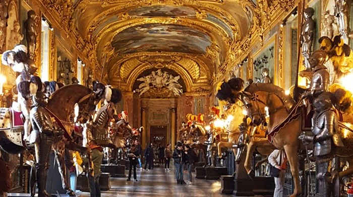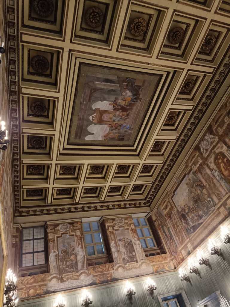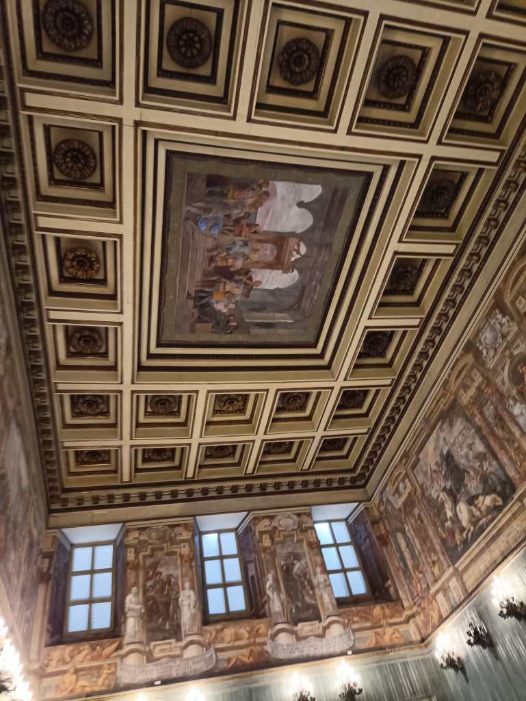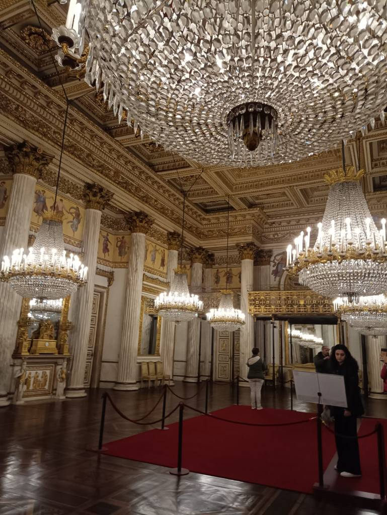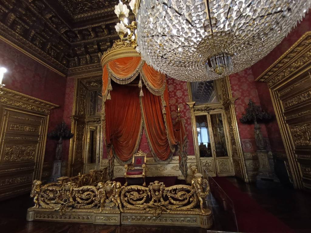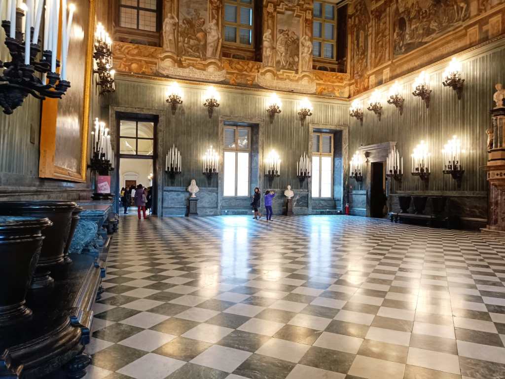 Terza tappa: il Palazzo Reale, la prima e più importante tra le residenze sabaude in Piemonte, teatro della politica degli Stati sabaudi per almeno tre secoli. È collocato nel cuore della città, nella Piazzetta Reale adiacente alla centralissima Piazza Castello, da cui si dipartono le principali arterie del centro storico: via Po, via Roma, via Garibaldi e via Pietro Micca. Rappresenta il cuore della corte sabauda, simbolo del potere della dinastia. Con un biglietto unico ho visitato il Palazzo Reale (Appartamento dinastico al primo piano nobile), l’Armeria Reale, la Galleria Sabauda e il Museo di Antichità (Sezione Torino).