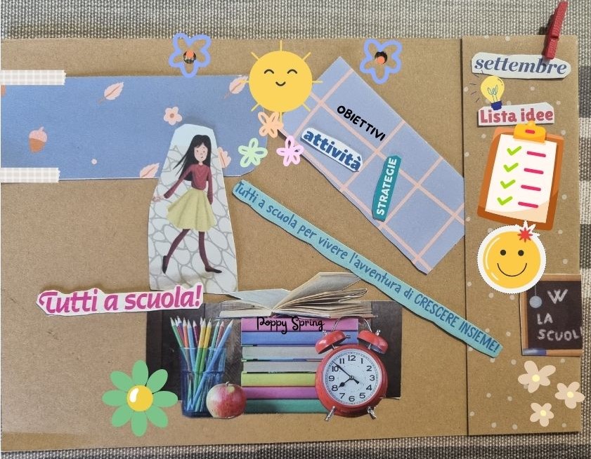 Questo è il taccuino di Poppy Spring dedicato al ritorno a scuola. L’ho realizzato con la tecnica dello scrapbooking, arte creativa e didattica utile per fissare ricordi, idee e obiettivi. Inoltre, è molto rilassante!