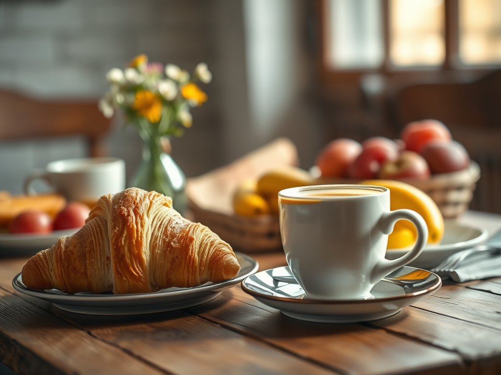 Non solo madeleine per Marcel Proust ma anche due tazze di latte e caffè e due croissant.