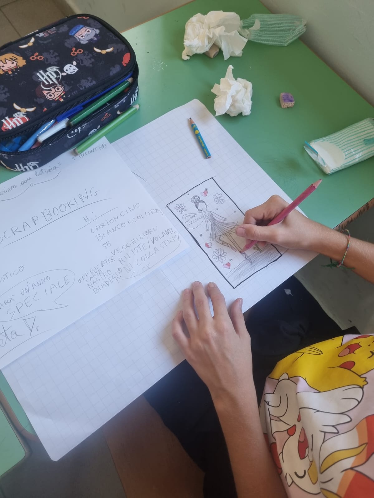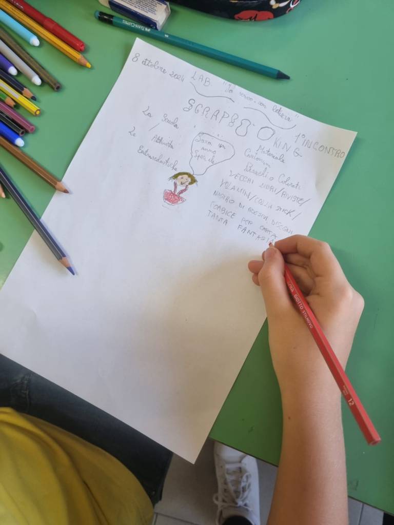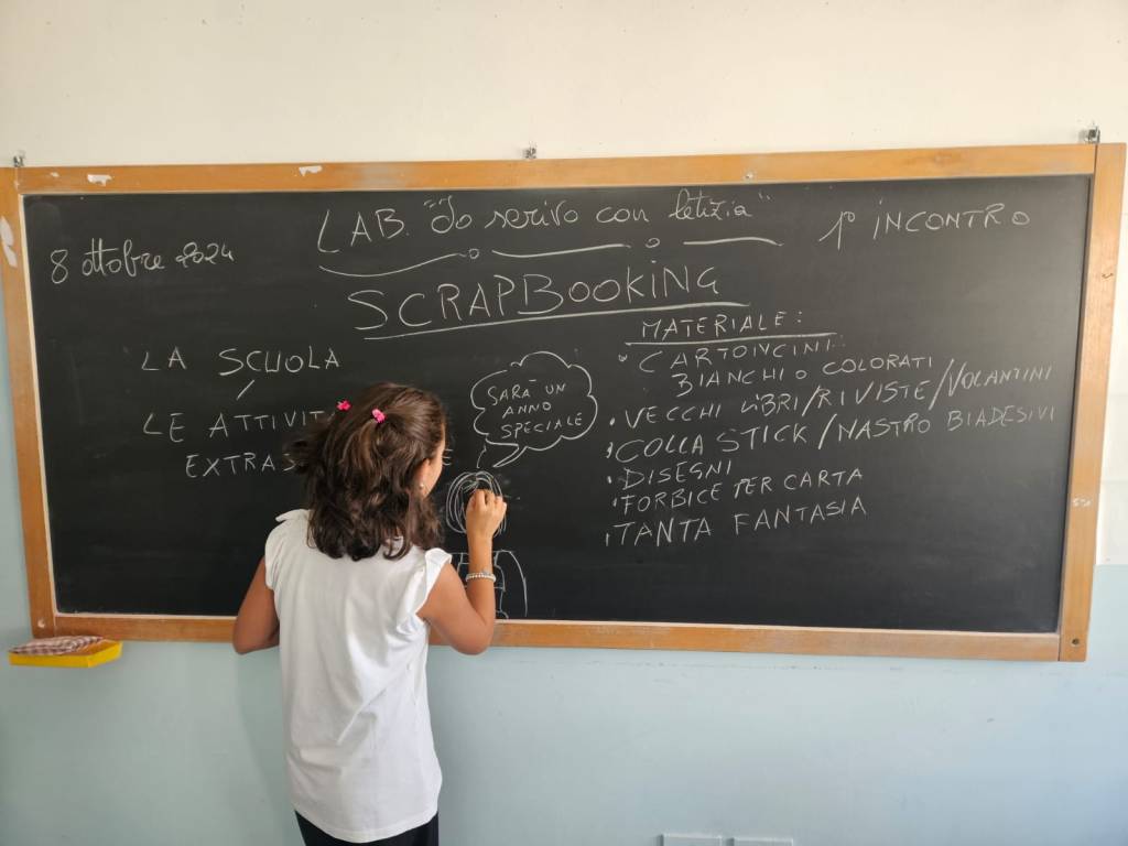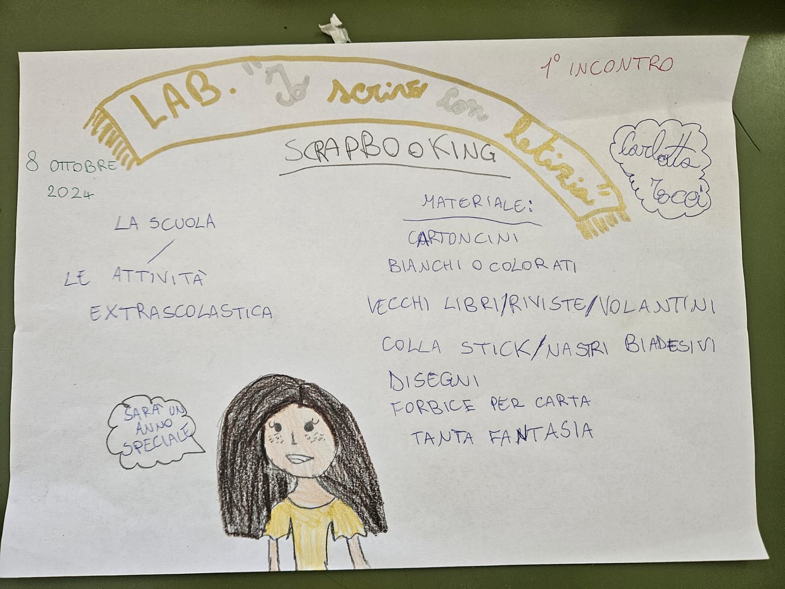 Ho iniziato con la 5 A (della scuola primaria “Monachelle” di Rossano) e la tecnica che useremo durante i nostri incontri di laboratorio è lo SCRAPBOOKING. Ogni bambino realizzerà il proprio piccolo libro e lo personalizzerà utilizzando immagini, disegni, foto e tutti i materiali che riterrà più idonei per illustrare le proprie opinioni, riflessioni ed emozioni. Il tema è: “Sarà un anno speciale” e riguarderà la scuola e le attività extrascolastiche. Attraverso un personaggio disegnato da loro (se stessi o inventato) i bambini si divertiranno – attraverso le immagini e le didascalie – a fissare sulla carta i loro obiettivi, sogni e aspettative riguardo a quest’ultimo anno di scuola elementare.