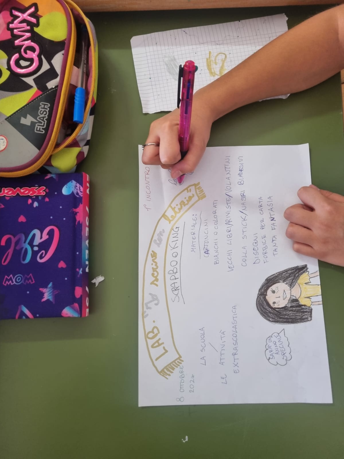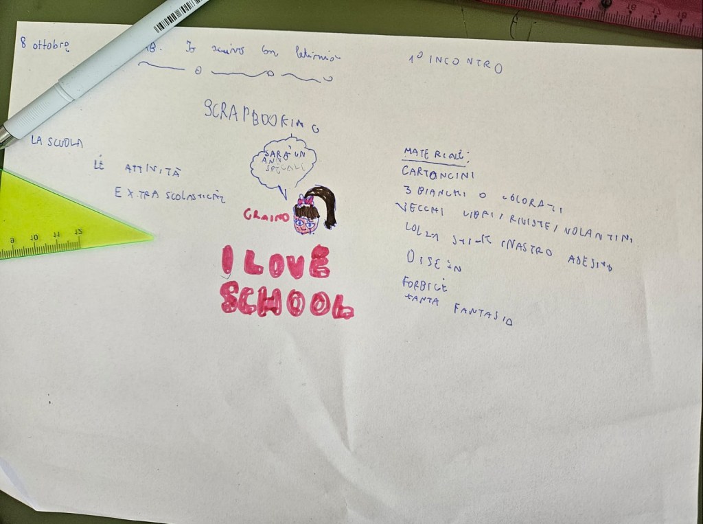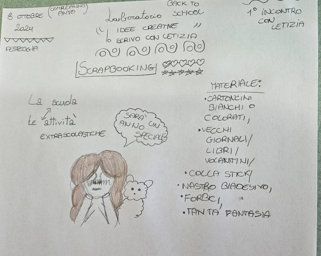 Ho iniziato con la 5 A (della scuola primaria “Monachelle” di Rossano) e la tecnica che useremo durante i nostri incontri di laboratorio è lo SCRAPBOOKING. Ogni bambino realizzerà il proprio piccolo libro e lo personalizzerà utilizzando immagini, disegni, foto e tutti i materiali che riterrà più idonei per illustrare le proprie opinioni, riflessioni ed emozioni. Il tema è: “Sarà un anno speciale” e riguarderà la scuola e le attività extrascolastiche. Attraverso un personaggio disegnato da loro (se stessi o inventato) i bambini si divertiranno – attraverso le immagini e le didascalie – a fissare sulla carta i loro obiettivi, sogni e aspettative riguardo a quest’ultimo anno di scuola elementare.