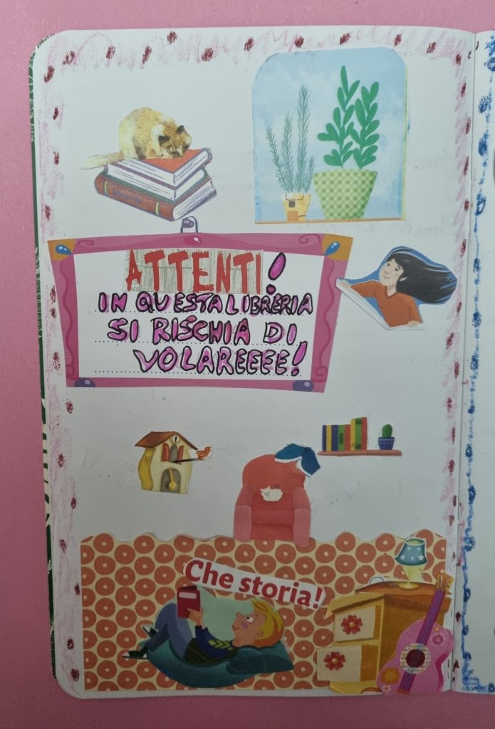 Anche oggi un’altra piccola occhiata nella libreria di Peonia, la zia di Poppy Spring. Qui, con i libri, si rischia di volare, come avverte un cartello. E chi legge lo sa!