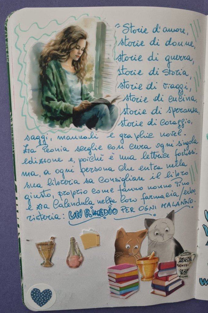 Proprio così. Peonia, zia di Poppy Spring, è una lettrice formidabile e una libraia attentissima ai bisogni dei suoi affezionati clienti. Per ogni loro stato d’animo, per ogni ferita dell’anima, ha il libro giusto.