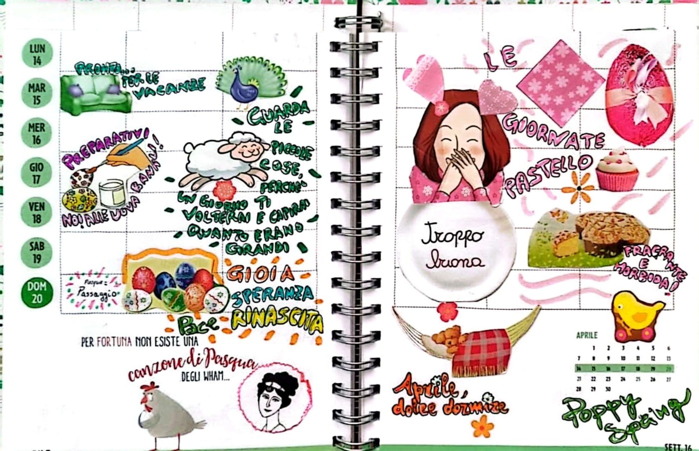 La settimana che inizia oggi ha già il sapore dolce della Pasqua. Sono le giornate pastello, così le considera Poppy Spring, perché sono delicate e morbide. Come la colomba (il dolce), fragrante all’esterno e soffice all’interno.