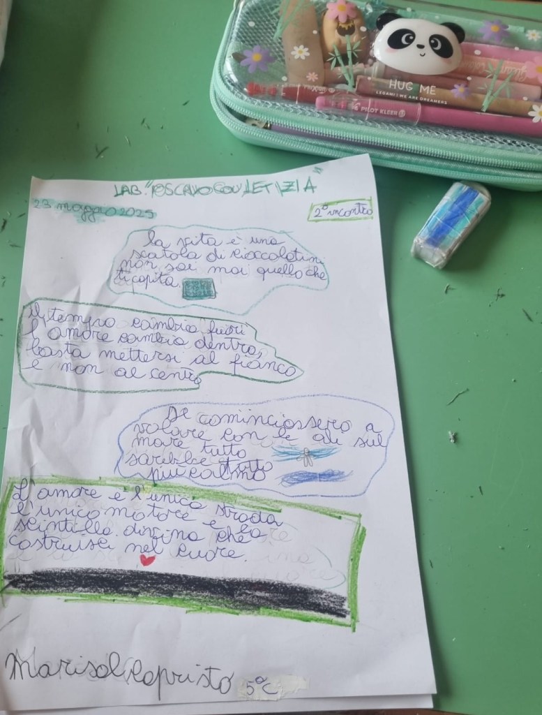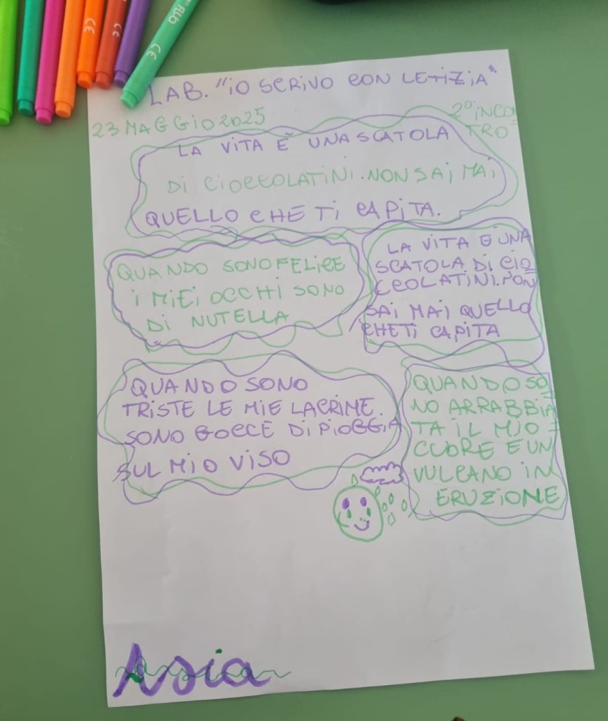 Bene, anche questa volta il lab. “Io scrivo con letizia” è stato allegro, creativo e ci ha arricchito di cose nuove, belle e utili!