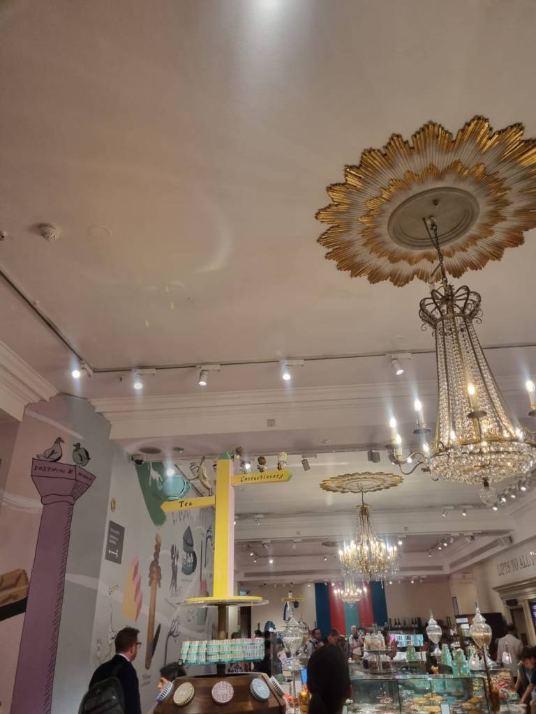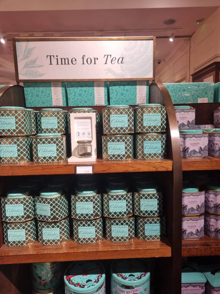 Fortnum & Mason – si trova al 181 di Piccadilly Street e credo sia il più antico (è stato fondato nel 1707 da William Fortnum e Hugh Mason come drogheria) ed elegante dei magazzini di Londra. L’ingresso principale è lussuoso e ci avvolge subito con un vastissimo assortimento di tè e caffè, pasticcini e tantissime varietà di miele e marmellate, cioccolata e biscotti. Ci sono anche le famose ceste da picnic di Fortnum’s, con la possibilità di creare la propria. Negli ultimi tre secoli Fortnum & Mason ha saputo creare una vasta selezione di eccellenti miscele di tè e infusi di erbe e frutta. Per questo è diventato fornitore ufficiale della Casa reale. Ogni cosa qui è attraente: le splendide teiere di porcellana con i setacci argentati, le innumerevoli tazzine e le caratteristiche “mug”. A un certo punto mi sono persa fra le centinaia di barattoli di miscele di tè, gli infusi di erbe e frutti e le gelatine varie. Quella di rose, prodotta con i petali freschi di un roseto dell’Oxfordshire e quelle al Cognac, allo Champagne o al Rum: decidere cosa comprare è stata un’impresa ardua. Piccola curiosità: Charles Dickens era un cliente assiduo.