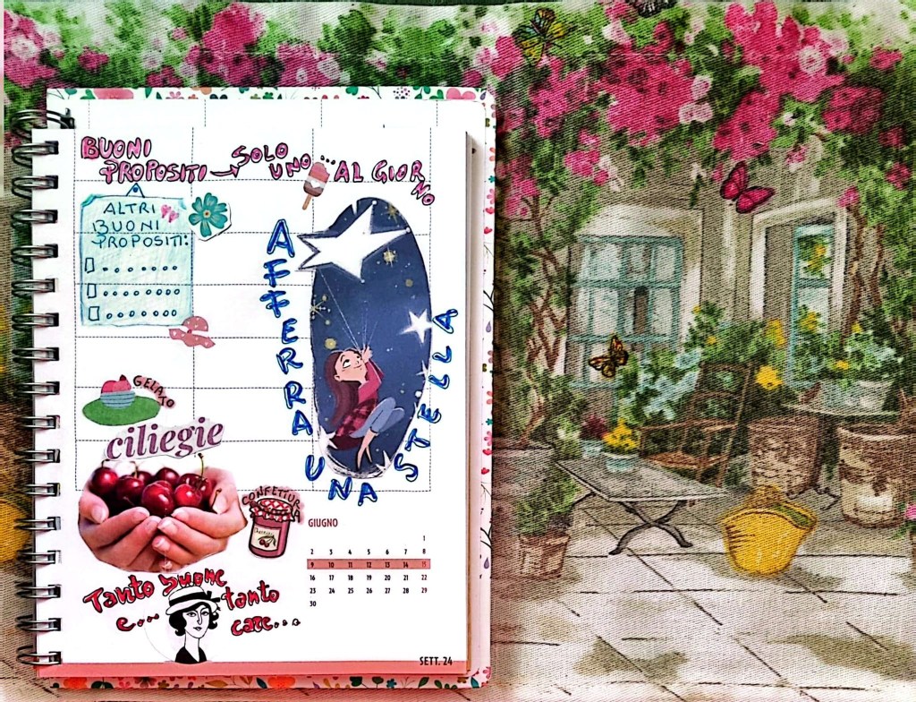 Nella seconda pagina della sua agenda settimanale Poppy ha segnato uno dei suoi buoni propositi: “Un solo gelato…al giorno” e poi una lista in cui indicare gli altri buoni propositi. Stabilire dei piccoli obiettivi è molto utile per la nostra crescita personale e anche per il nostro benessere. Riuscire a rispettarli, ahimé, non è facile perchè ci vuole impegno e determinazione. Un consiglio, allora: cerchiamo di essere realisti, quando stabiliamo degli obiettivi!