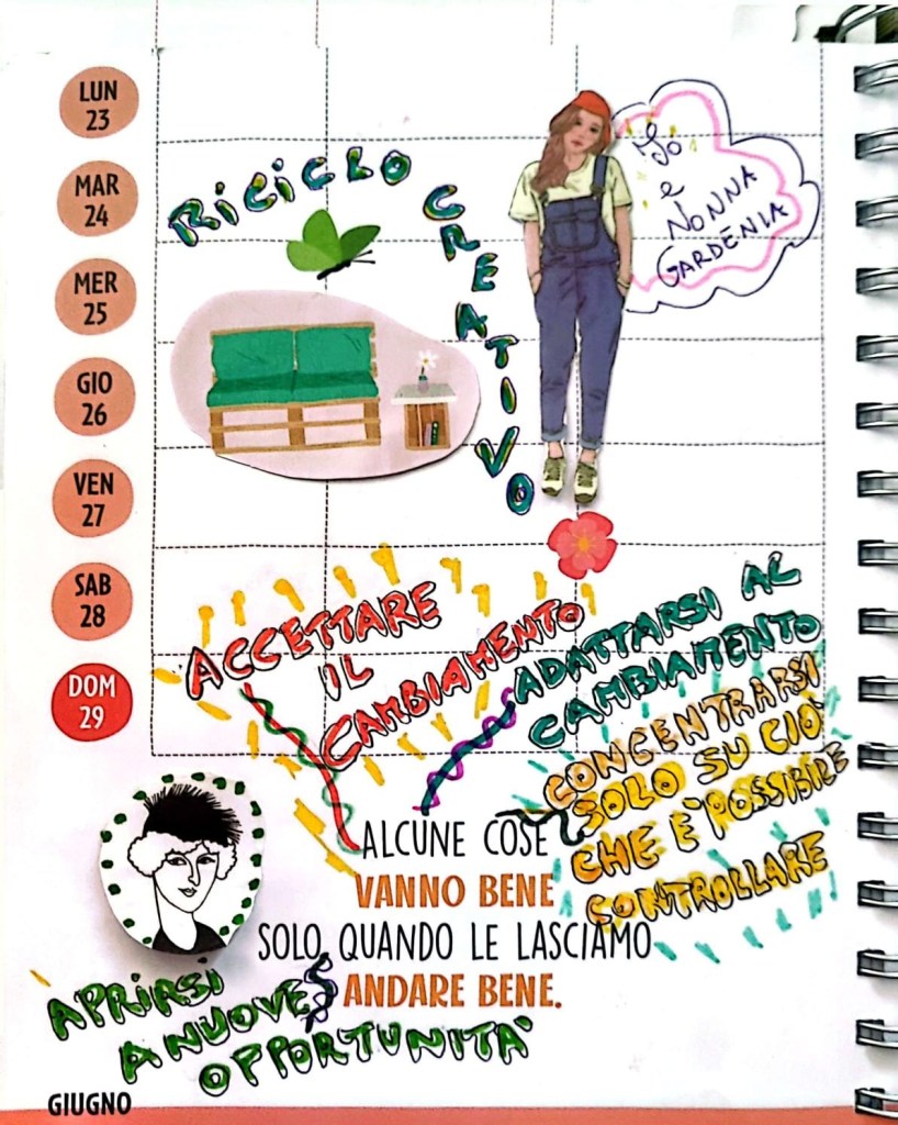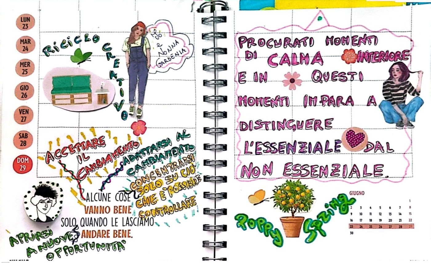 Nella seconda pagina della sua agenda settimanale Poppy ha scritto un’altra bella frase, di Rudolf Steiner: “Procurati momenti di calma interiore e in questi momenti impara a distinguere l’essenziale dal non essenziale”.