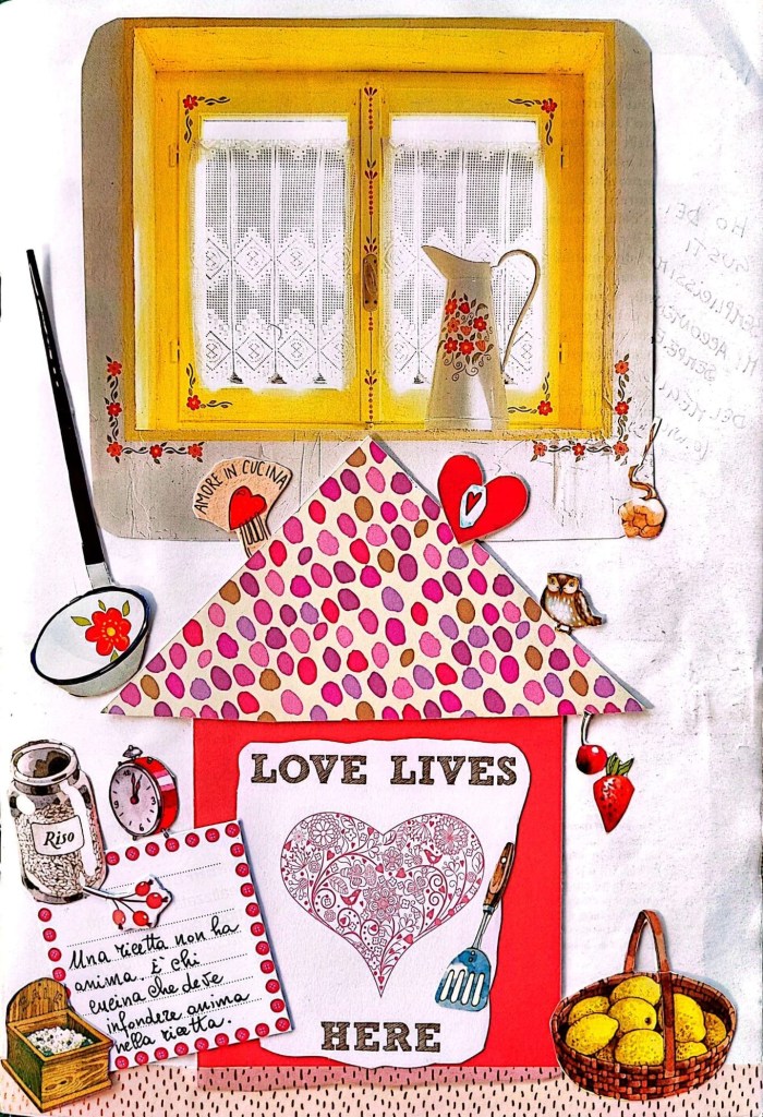 Dunque, oggi è martedì, quindi tocca a Genziana e alla sua cucina. In queste due pagine del suo ricettario lei e Poppy Spring hanno voluto rendere l’idea di una casa serena, in cui c’è amore, e questo si ritrova anche nella sua cucina perché, come ha scritto, “Cucinare è un atto d’amore, un modo per nutrire il corpo e l’anima.”