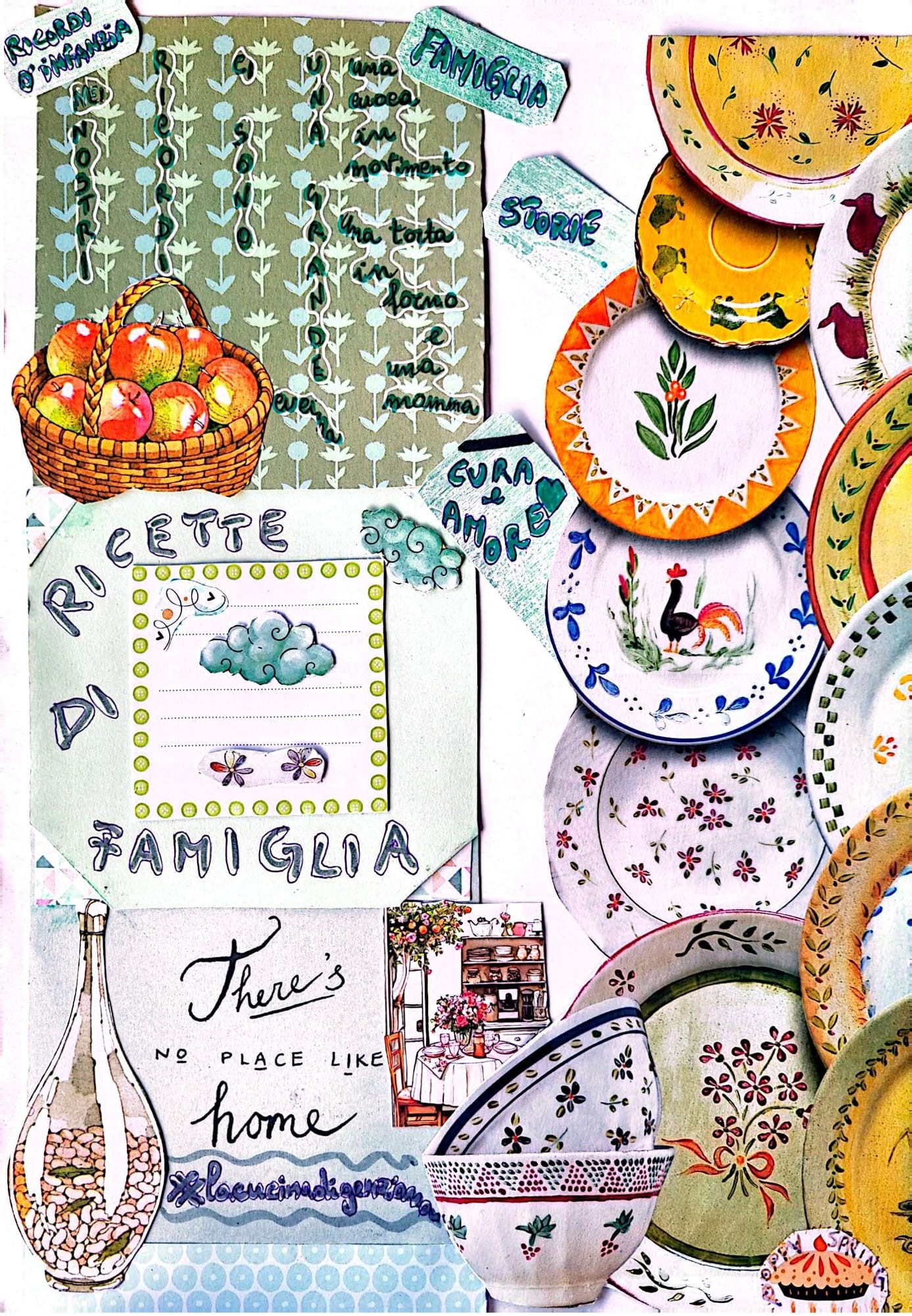 A proposito di casa, in questo collage che fa parte del Kitchen Journal di Genziana c’è una citazione che dice: Non c’è nessun posto come la propria casa. Questa frase, resa celebre dal film “Il mago di Oz”, esprime un desiderio che appartiene a ognuno di noi: trovare un luogo dove sentirci veramente noi stessi e dove poter essere amati e accettati. Un luogo che ci dà sicurezza, affetto e calore contribuendo, così, al nostro benessere. Tu l’hai trovato?