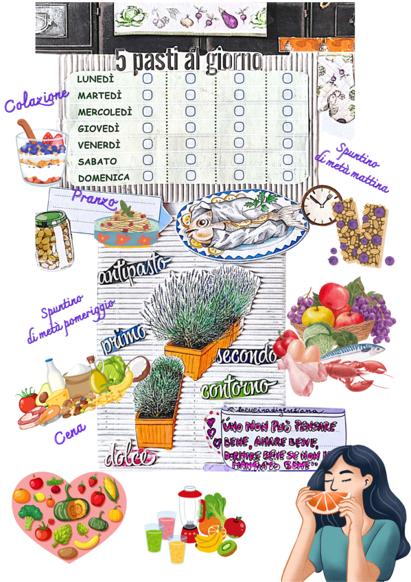 Buongiorno! Oggi, dalla cucina di Genziana, ci arriva questa pagina del suo journal, dedicata al mangiare sano. Cinque pasti al giorno per distribuire per l'energia, per gestire la fame ed evitare di mangiare troppo ai pasti principali e per avere uno stile di vita sano. C'è chi preferisce fare tre pasti al giorno ed evita... Continua a leggere →