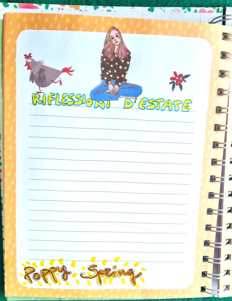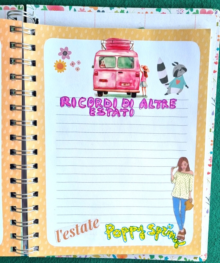 In queste due pagine del journal di Poppy Spring c’è spazio per le nostre riflessioni e per i ricordi di altre estati. Cosa affiora subito alla nostra mente? Persone, luoghi, canzoni, libri, film, incontri speciali? Ogni cosa è importante, perché ha contribuito a definire chi siamo oggi.