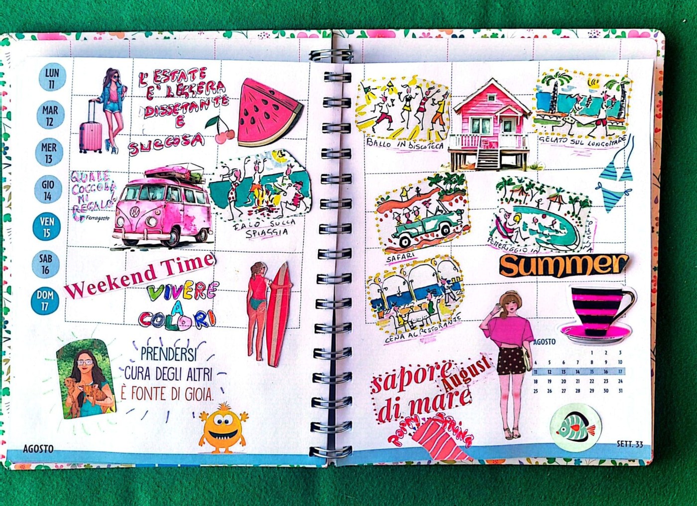 Questa è la settimana clou dell’estate, con Ferragosto, e Poppy Spring nella sua agenda ha scritto: “Quale coccola mi regalo?”. Sì, perchè i bei ricordi vanno costruiti, ma come si fa? Ci sono 4 passi importanti da compiere: vivere appieno il presente, creare esperienze significative, registrarle in modo creativo e condividerle con le persone care. Per vivere appieno il Ferragosto, per esempio, Poppy ha incollato alcune delle scelte che possiamo fare: picnic, grigliate, pranzo al ristorante o a casa, bagno e spuntino in piscina e ce ne sono tante altre, in base ai nostri gusti. Anche visitare un museo, fare una passeggiata in un parco o in un bosco…l’importante è regalarci delle “coccole” per divertirci, rilassarci e condividere la nostra esperienza con chi vogliamo.