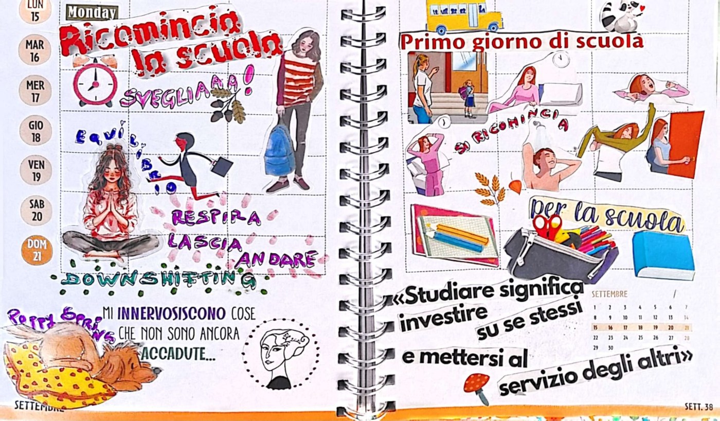 Nella seconda pagina Poppy ha illustrato, con le immagini, cosa le serve come materiale scolastico, la sequenza della sua routine quotidiana e infine un promemoria: STUDIARE SIGNIFICA INVESTIRE SU SE STESSI E METTERSI AL SERVIZIO DEGLI ALTRI. È un investimento fondamentale che porta un ritorno duraturo in termini di crescita intellettuale, emotiva, professionale e finanziaria.