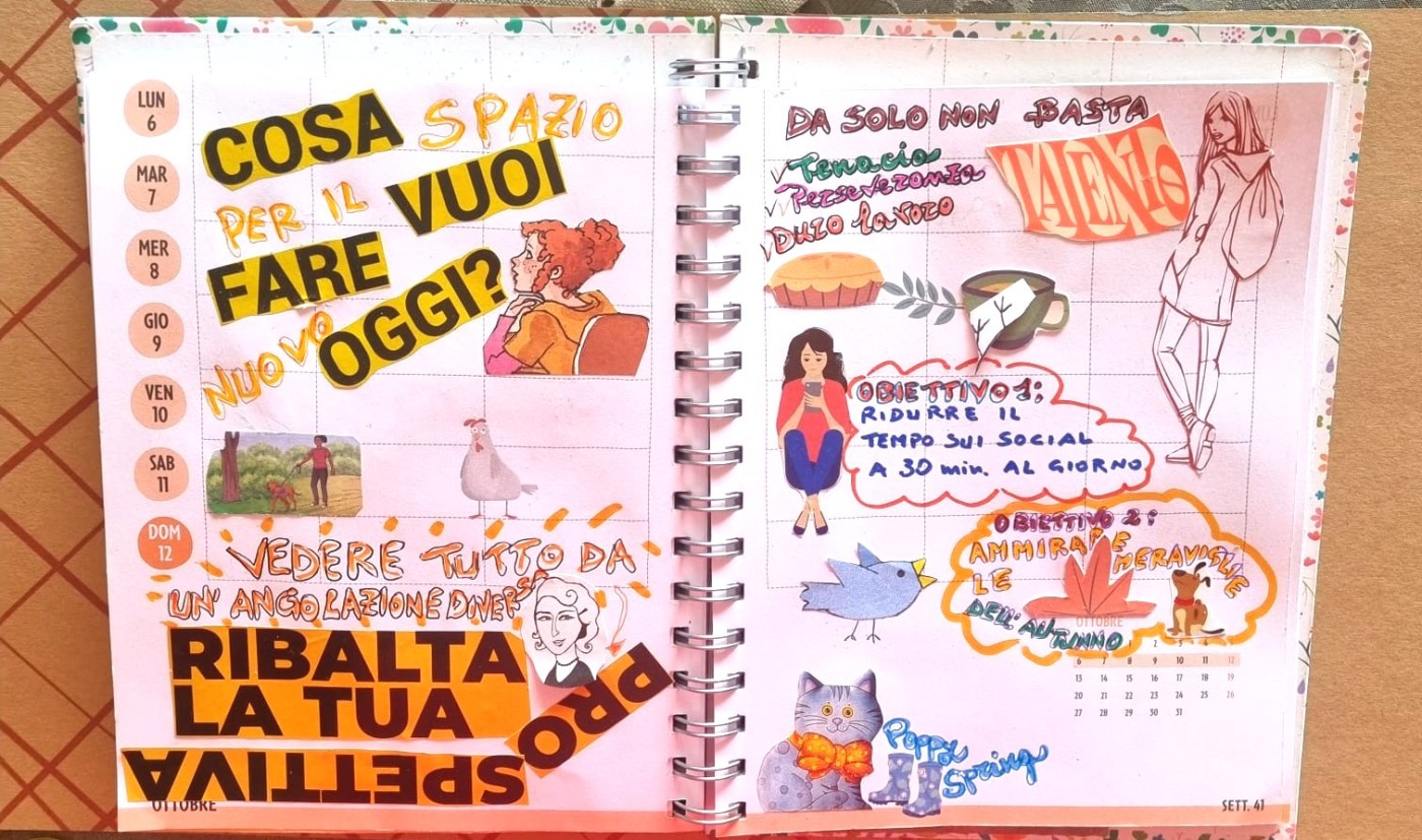 L’altra frase incollata da Poppy è: RIBALTA LA TUA PROSPETTIVA. Sì, perchè vedere le cose da un’angolazione diversa ci può aiutare a risolvere i problemi, a comprendere meglio noi stessi e gli altri e a trovare nuove soluzioni. In relazione al concetto di prima, cioè fare qualcosa di nuovo ogni giorno, è importante non avere paura di provare cose nuove: affrontare delle sfide può farci scoprire nuove capacità e modi di pensare.