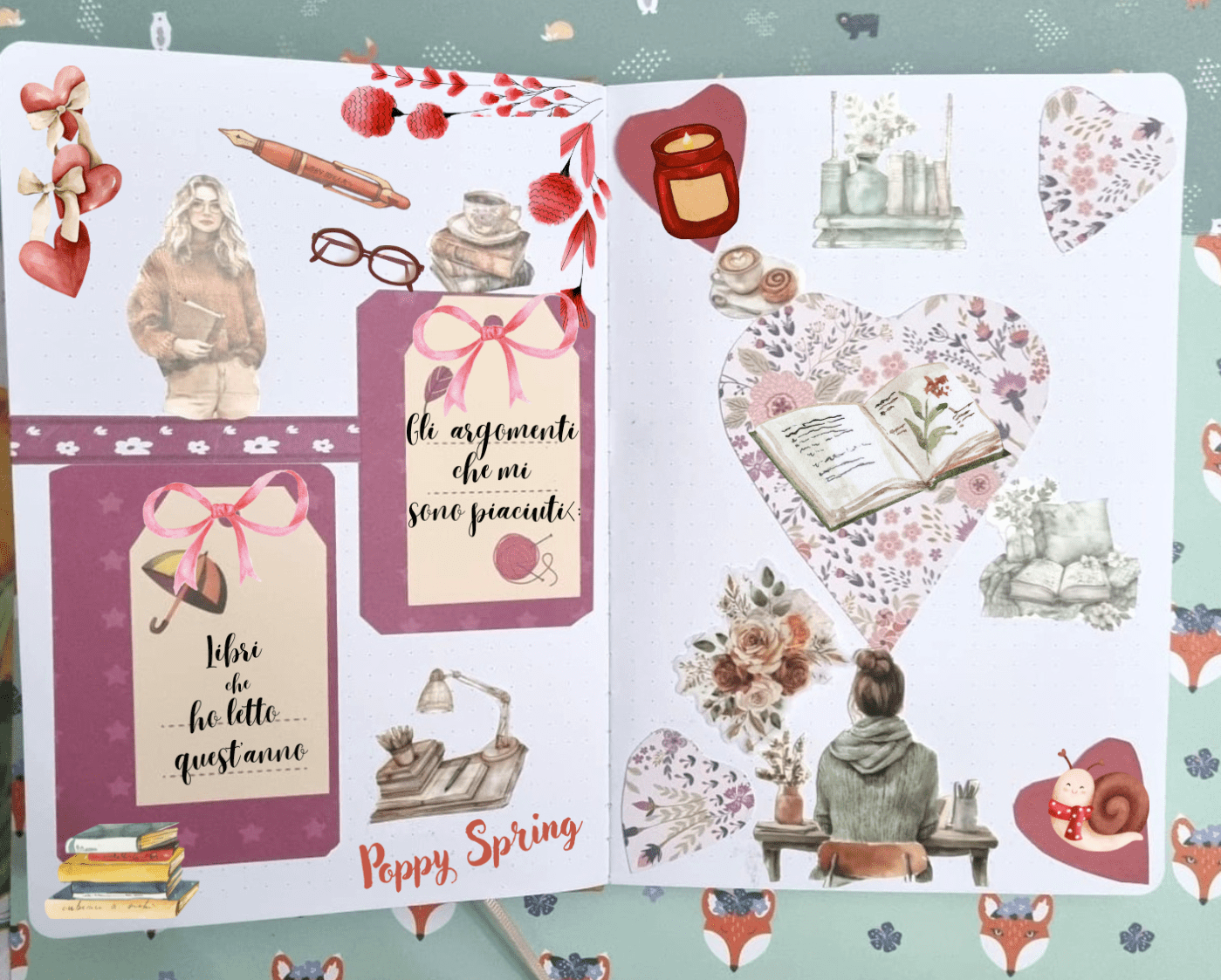 Il collage che ci propone oggi Poppy Spring piacerà di sicuro a tutti coloro che amano i libri e non smettono mai di leggere perchè sanno che ogni volta ne vale la pena. Anche qui due nuove liste (Poppy adora le liste!): I LIBRI CHE HO LETTO QUEST’ANNO (da aggiornare ancora nei prossimi due mesi) e GLI ARGOMENTI CHE MI SONO PIACIUTI DI PIÚ.