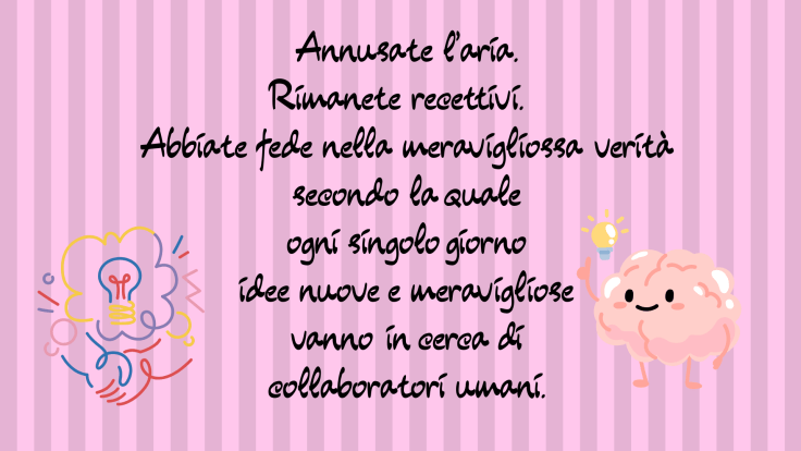 - Può essere allenata: come un muscolo, la creatività può essere stimolata e sviluppata con la pratica e l’applicazione costante.