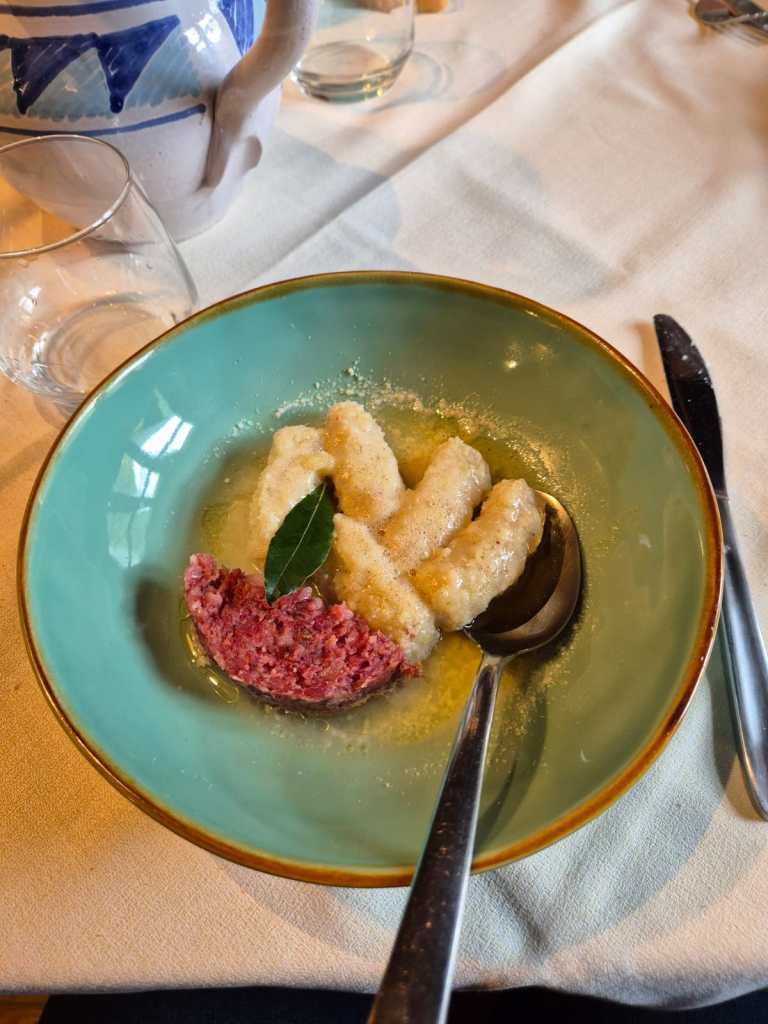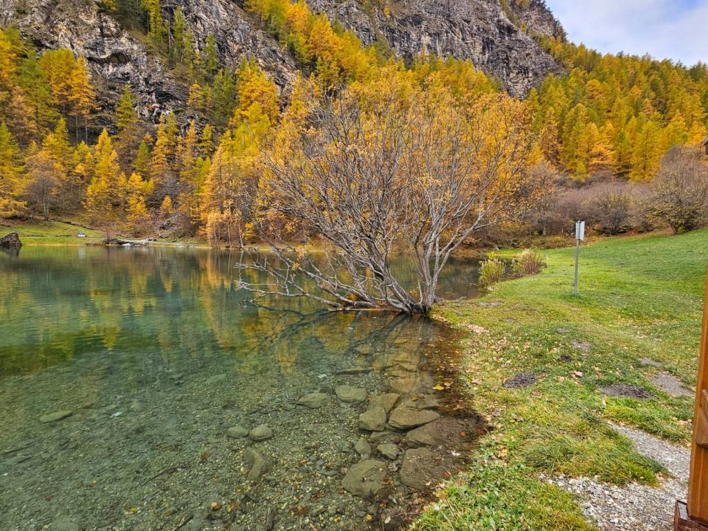 Il lago di Laux ha rigenerato i nostri occhi con i colori brillanti dell’autunno (ricordo un giallo così intenso da riluccicare). Pur pensando ai primi freddi, la vista dalla finestra, proprio sopra il tavolo che ci ha accolti per il pranzo, ci ha donato un calore speciale, trasformando un momento semplice in un piccolo rifugio di bellezza e serenità.