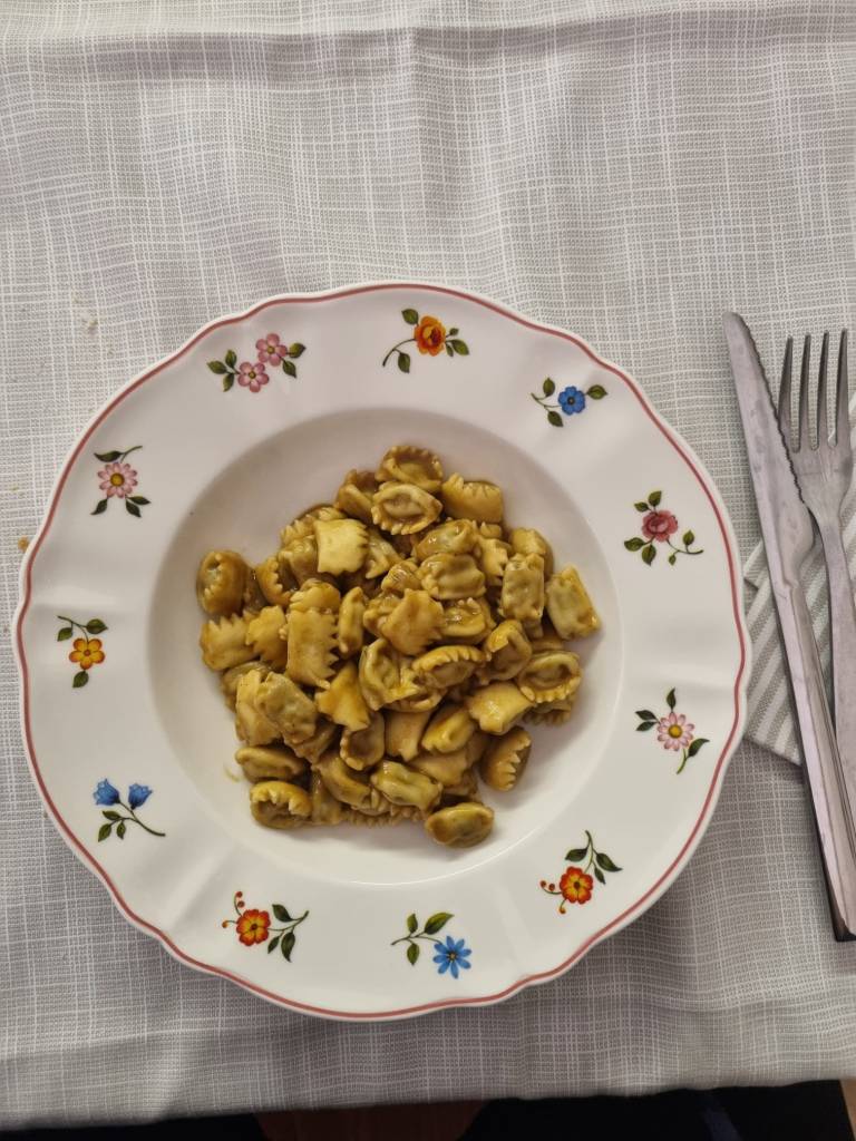 All’ora di pranzo, mi sono fermata in un ristorante in piazza e ho mangiato i famosi agnolotti del plin con sugo d’arrosto. “Plin”, dal dialetto piemontese, significa “pizzicotto”. Davvero molto buoni!