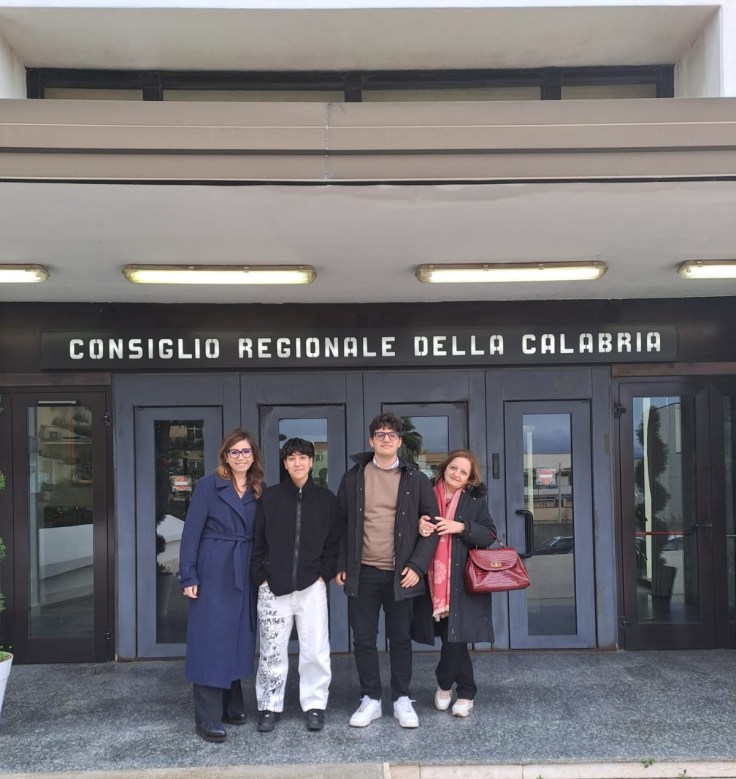 Il 16 dicembre sono andata a Reggio Calabria con due dei tre studenti e con le mie colleghe Fiorenza Urso e Francesca Paladino. Nell’Aula Consiliare di Palazzo Campanella, sede del Consiglio Regionale della Calabria, abbiamo partecipato, con grande emozione, alla cerimonia di premiazione. I numerosi interventi – del Presidente del Consiglio regionale Salvatore Cirillo, del Garante delle persone vittime di reato Lo Monaco, dell’Assessora all’istruzione Eulalia Micheli, del consigliere regionale Marco Polimeni, della Garante delle persone detenute Giovanna Russo, del Presidente del Co.re.com Calabria Fulvio Scarpino, della rappresentante dell’Ufficio scolastico regionale Franca Falduto e del già presidente della Consulta studentesca provinciale Daniele Trimboli – sono stati moderati da Pasquale Romano.