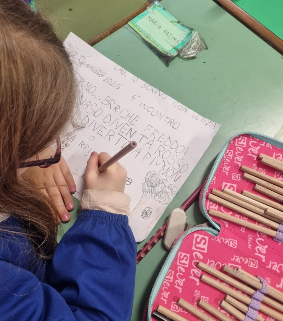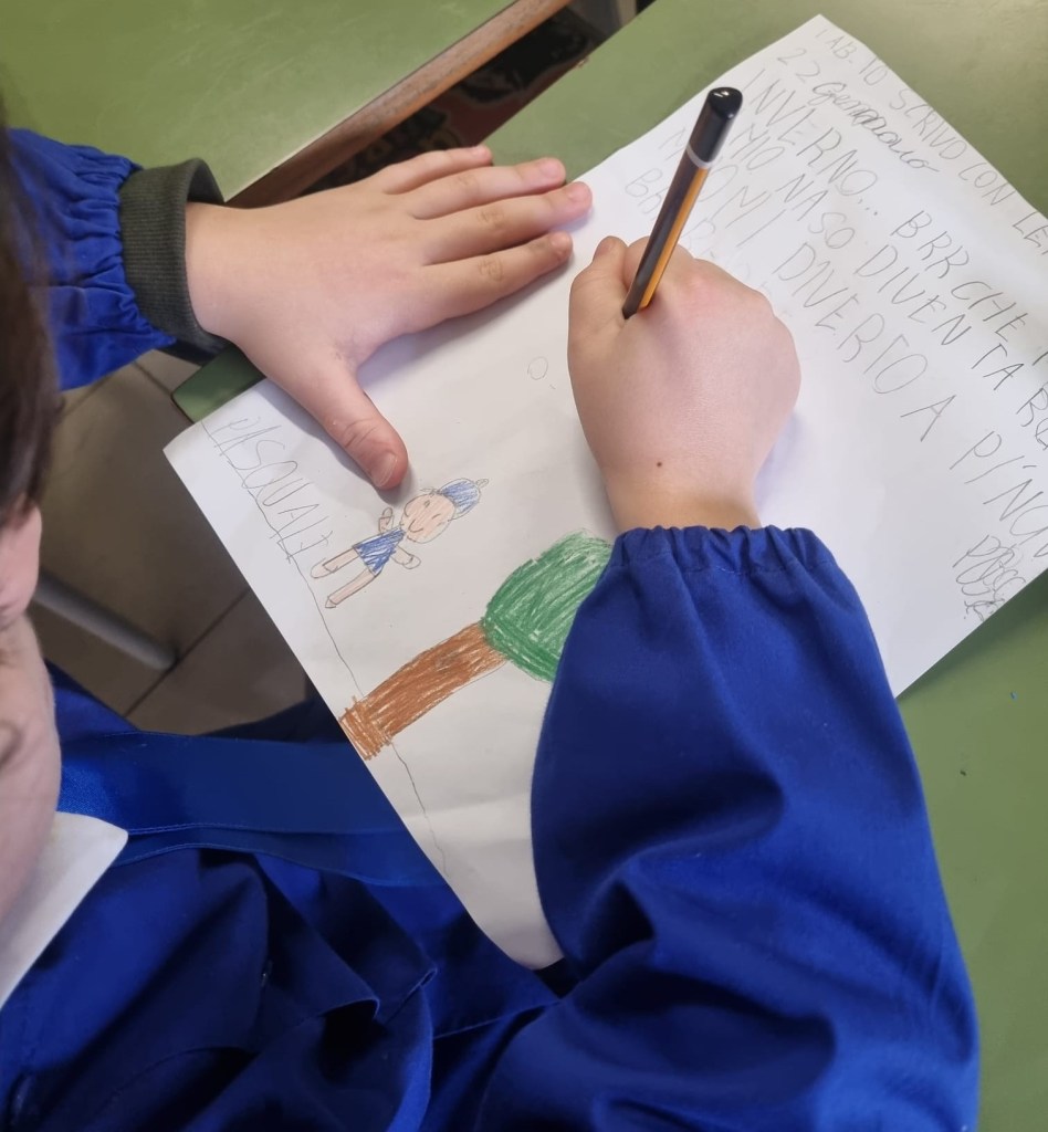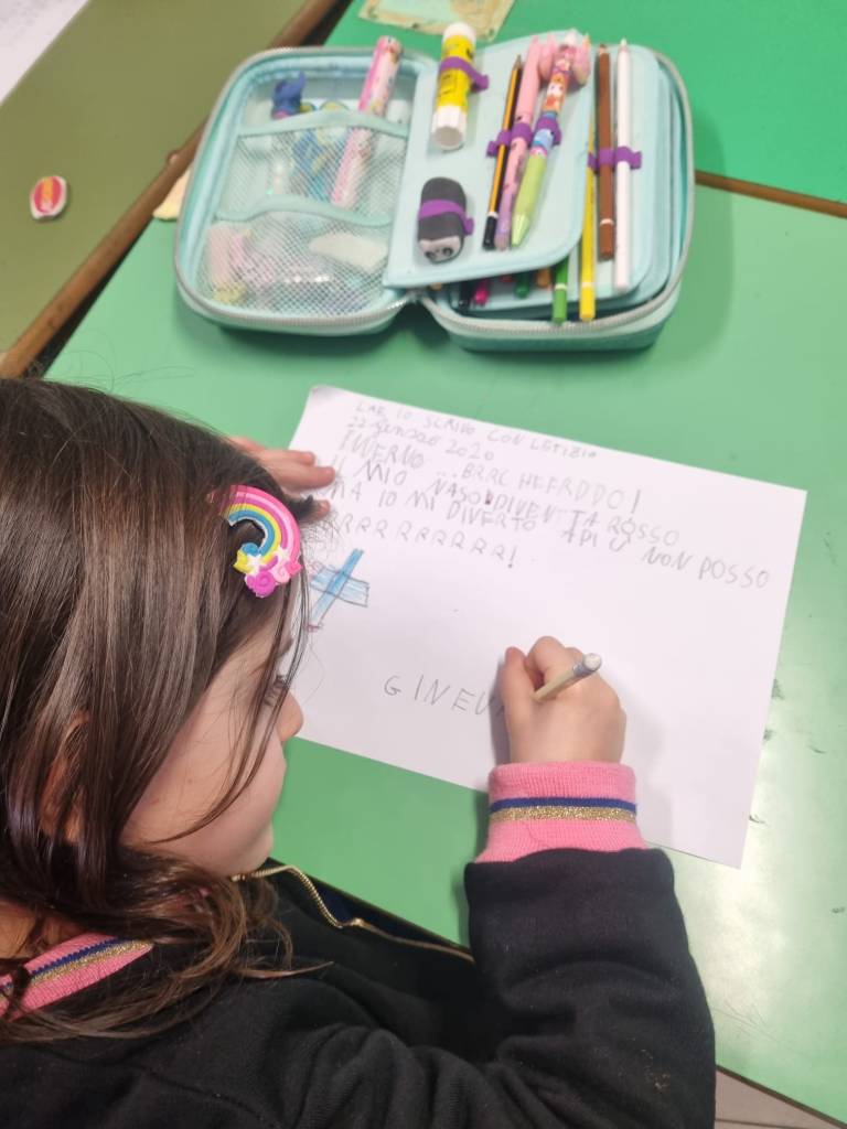 Poi, tutti a scrivere, disegnare e colorare bambini che tremano di freddo ma felici di aver fatto un allenamento di meraviglia fra le rime.