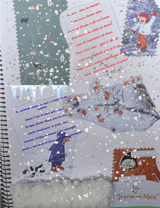 Nel 4° incontro del mio lab. di scrittura creativa con i bambini della 1D (Scuola Primaria “Monachelle” di Rossano) e la loro splendida maestra Elisa Milito ci siamo divertiti a giocare con la musicalità delle parole e abbiamo scritto questa poesia che mette in risalto le strategie degli animali del bosco per sopravvivere al freddo e duro inverno.