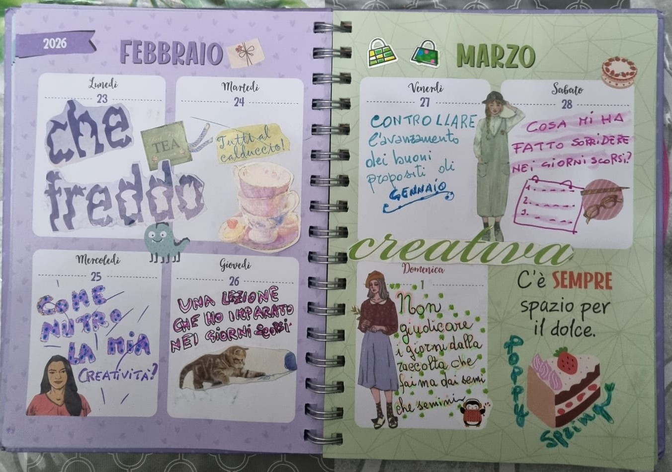 La settimana di Poppy Spring sul suo diario creativo inizia con la scritta CHE FREDDO ma vediamo giorno per giorno nei dettagli.