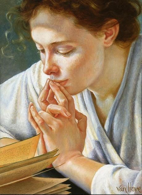 Questo bel dipinto è di Francine Van Hove (1942-2025), rinomata pittrice e disegnatrice francese, celebre per i suoi ritratti di giovani donne avvolti in atmosfere sensuali, intime e sognanti. Il suo stile si ispira ai pittori del Rinascimento italiano e fiammingo e si concentra sulla bellezza del corpo, infatti lavorava con modelli dal vivo. A me piacciono molto le sue opere perchè le donne sono “catturate” in momenti di riposo, lettura o introspezione e sono caratterizzate da pose naturali, curve morbide e da un uso sapiente della luce e dell’ombra.